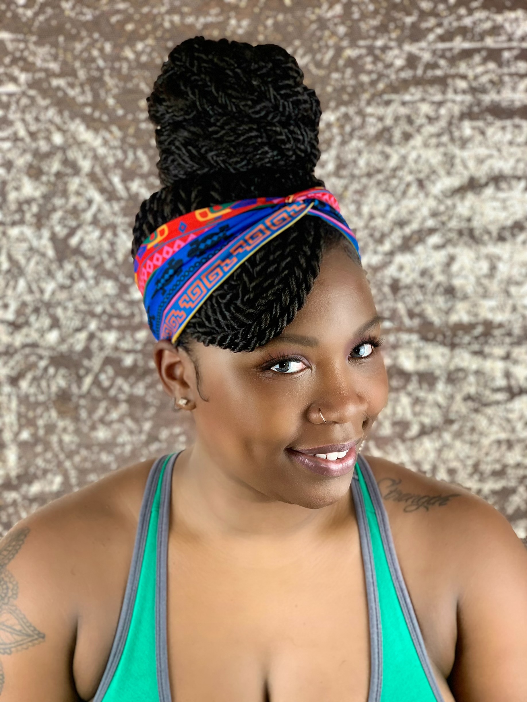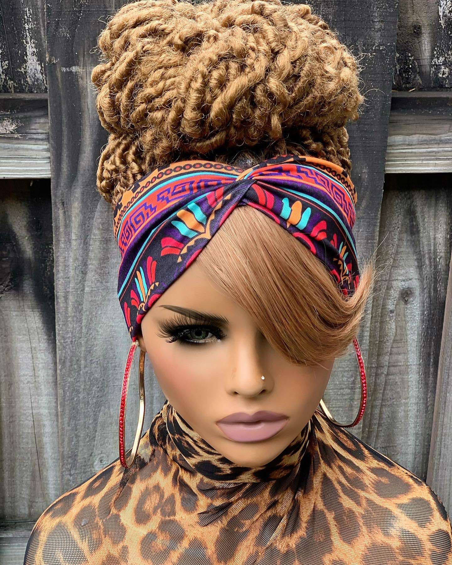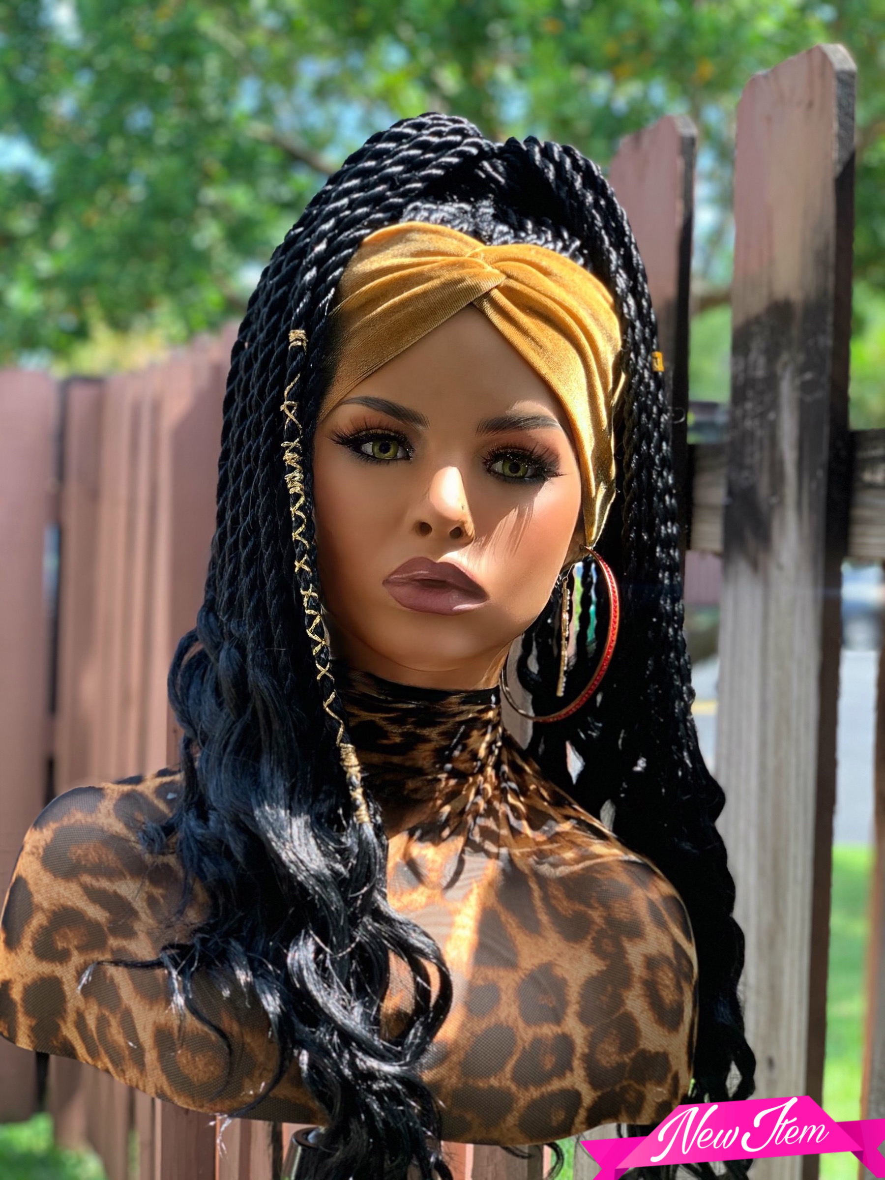 The “??? ???” wig can be made using crochet locs, braids, passion twists, or regular twists hair. This wig only has hair around the perimeter and is made to be worn up in a bun or a loose ponytail. If you desire to wear your edges out please add that information in order notes so that I may make your cap size 1/2” smaller. Headband included but can be changed. Comes with combs so this bad girl is not going anywhere!!! Free accessories if you add on to your order